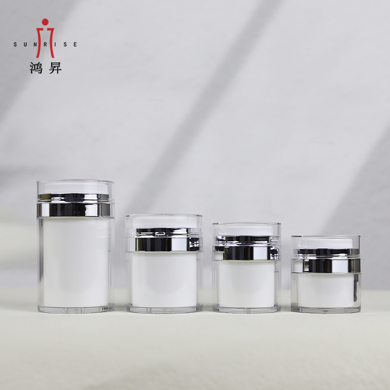 HS-016C Recipient acrilic fără aer 15g 30g 50g 100g Borcan pentru cremă cosmetică din plastic alb negru a devenit o alegere ideală pentru produsele de îngrijire a pielii de gamă medie până la înaltă datorită etanșării sale excelente, controlului precis al accesului și capacității de conservare pe termen lung. Fie că este o esență foarte activă, o loțiune cu ingredient cu concentrație ridicată sau un produs care subliniază o formulă pură, sticla cu vid poate reduce în mod eficient oxidarea și poate evita poluarea, sporind în același timp sentimentul de ritual și valoarea de marcă al produsului.